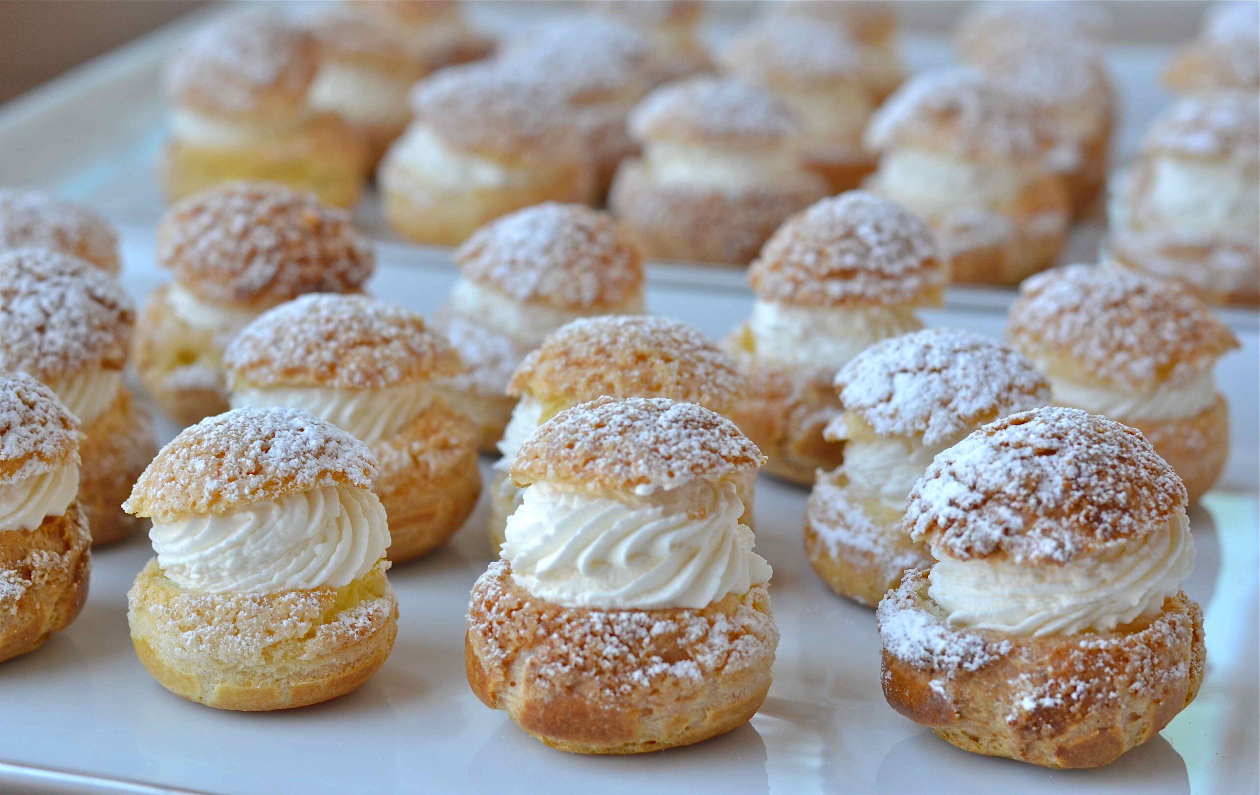 Lets make some wonderful Eclair’s. You’ll make eclairs with strawberries, and and lemon flavor and raspberry as well or just the old fashioned chocolate tops, these are American style.